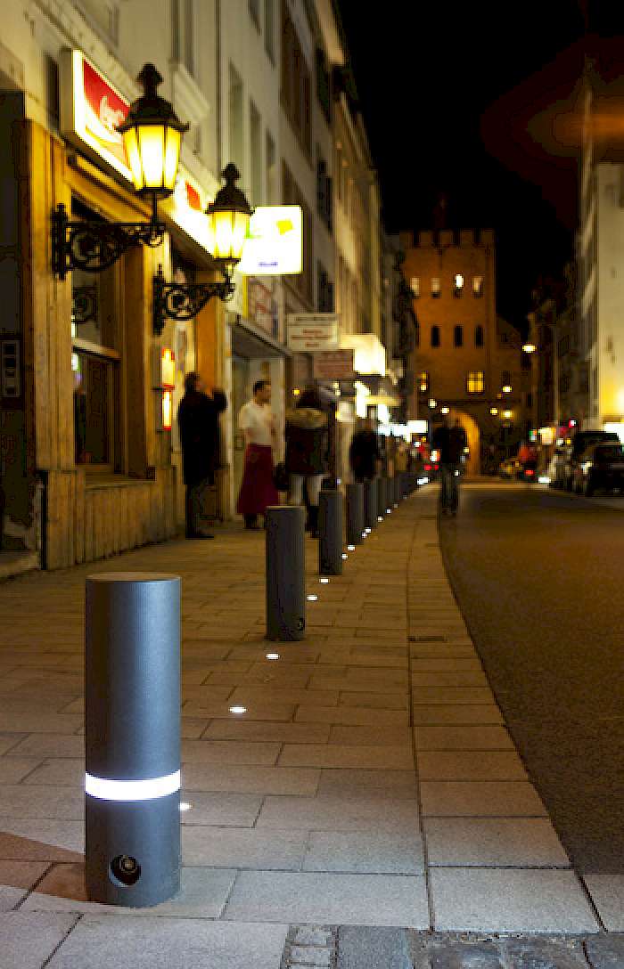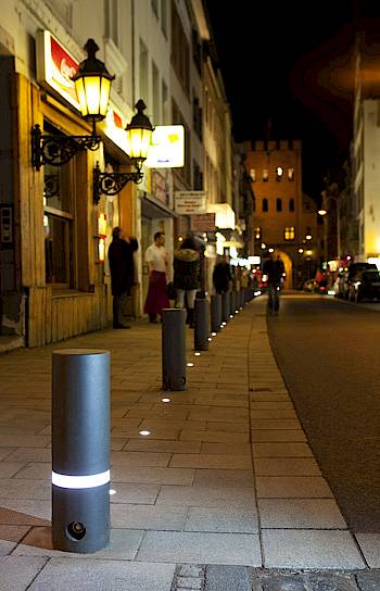 Design und Sicherheit im Stadtbild vereint - mit dem neuen Sicherheitspoller "Protector" von ABES hält die moderne LED-Lichttechnik nun auch bei abnehmbaren Absperrpfosten Einzug. Die Entwicklung geht auf eine Forderung vieler Städte zurück, die Verkehrsteilnehmer an vielseitig genutzten Plätzen in der Dunkelheit schützen möchten. Zu diesem Zweck hat ABES im Kopf seines neuen Absperrpfostens zwei Leuchtbänder mit je 18 LED-Lichtern integriert. Sie sollen den Poller samt Nahbereich mit maximaler Sicherheitswirkung erhellen. Konkurrenzlos sind laut Hersteller die niedrigen Stromkosten, da der Poller lediglich drei Watt pro Stunde verbraucht. Ebenfalls einzigartig soll die Mobilität des "Protectors" sein. Er kann, so ABES, mit wenigen Handgriffen demontiert werden, so dass er auch dort einsetzbar ist, wo zeitweise Durchfahrten vorgesehen sind. Die Standfestigkeit soll stets gegeben sein, der arretierte Poller steht laut ABES spielfrei wie einbetoniert. Dieses Merkmal ist unmittelbar mit einer weiteren Besonderheit kombiniert, die es nach eigenen Angaben nur bei ABES gibt: Die integrierte Sollbruchstelle ("3p-Techologie"). Ein kleines Verbindungsstück zwischen Pollerfuß und Bodenhülse bricht bei einer definierten Krafteinwirkung, beispielsweise bei einem Auffahrunfall. Dadurch sollen sowohl Poller als auch Bodeneinheit oft nahezu unversehrt bleiben. Zur Reparatur muss laut Hersteller lediglich das Verbindungsstück ersetzt werden, was mit wenigen Handgriffen und preiswert erledigt ist. Durch die Niederstromversorgung besteht keine Gefahr für Unfallbeteiligte, Retter oder Passanten.
