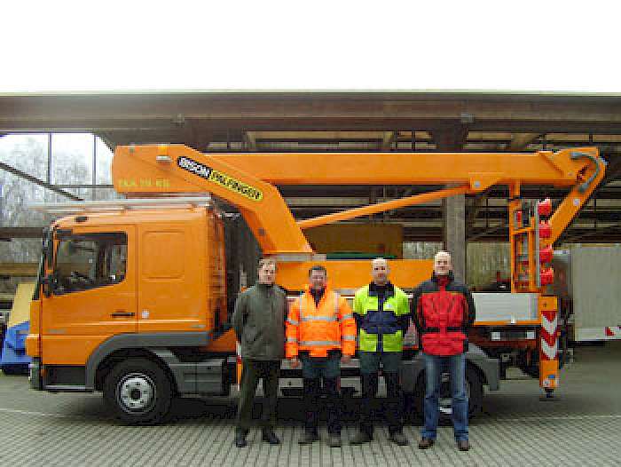 Die Stadt Münster setzt ganzjährig eine Hubarbeitsbühne TKA 19 KS im Baumschnitt beim Amt für Grünflächen und Umweltschutz der Stadt Münster ein. Wichtig für die Endscheidung war der Stadt die kompakte Bauweise, wobei auch auf die seitliche Reichweite großer Wert gelegt wurde. Die TKA 19 KS ist zudem mit verlängerten Stützen ausgestattet, um Unebenheiten besser ausgleichen zu können, ohne dabei laut Palfinger Reichweite einzubüßen. Der Halogenleuchtpfeil ist besonders in der Fahrradstadt Münster von Vorteil. Aus diesem Grund besteht die Notwendigkeit die Maschine mit drei Personen einzusetzen, wobei zwei mit der Hubarbeitsbühne arbeiten und eine Person den Verkehr sichert.Das Fahrerhaus soll ermöglichen, Wechselkleidung und die umfangreiche Baumkartei, in der 100.000 Bäume verzeichnet sind, mitzuführen. In den großen, integrierten Gerätekästen wird ein Stromerzeuger, Motorsägen, Kanister, Absperrmaterial und Werkzeug mitgeführt. Die darüber hinaus noch vorhandene offene Ladefläche wird für Schnittholz verwendet. Die Maschine erfüllt die Euro 5 Norm.