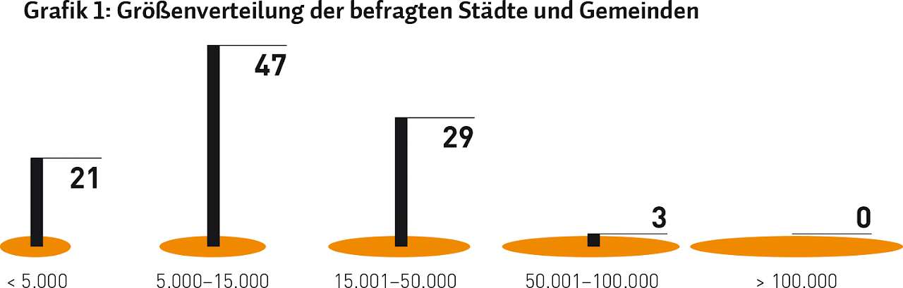 Jeder Baubetriebshof hat - unabhängig von seiner Größe - diverse Fahrzeuge. Je größer der Betrieb, desto umfangreicher ist naturgemäß auch der Fuhrpark. Aber was „leisten“ sich speziell die kleineren und mittleren Gemeinden? Welche Arbeiten führen sie selbst durch? Und wofür nutzen sie Dienstleister, seien es nun größere Baubetriebshöfe aus Nachbargemeinden oder private Anbieter? Das wollten wir genauer wissen und haben uns bei der Auswahl der 100 Teilnehmer des KT Trend-Report zum Thema Fahrzeugtechnik bewusst auf Gemeinden und Städte unterhalb der Grenze von 100.000 Einwohnern konzentriert. Dies umso mehr, da rund 90 % der Städte und Gemeinden in Deutschland weniger als 20.000 Einwohner haben. Die Aufteilung unserer Umfrageteilnehmer nach Größen gibt Grafik 1 wieder.