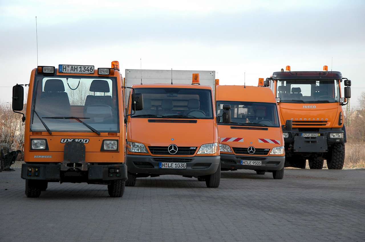 Welche Arbeiten werden mit diesen Fahrzeugen bevorzugt erledigt? In Sachen Stadt- und Straßenreinigung sind es eindeutig die Spezial-, genauer gesagt die Kehrmaschinen. Aber „nur“ 67 Kommunen führen dies selbst durch, immerhin 33 vergeben die Arbeit komplett an Dritte. Im Winterdienst dagegen sind 97 von 100 selbst aktiv, wobei sicher zum Teil auch Dienstleister mit in die Speichen greifen. Fahrzeug der Wahl sind hier Geräteträger (31 Stück), gefolgt von Lkw (28), Standard- (17) und Kommunalschleppern (15). Nur fünf Bauhöfe vergeben die Arbeit komplett.