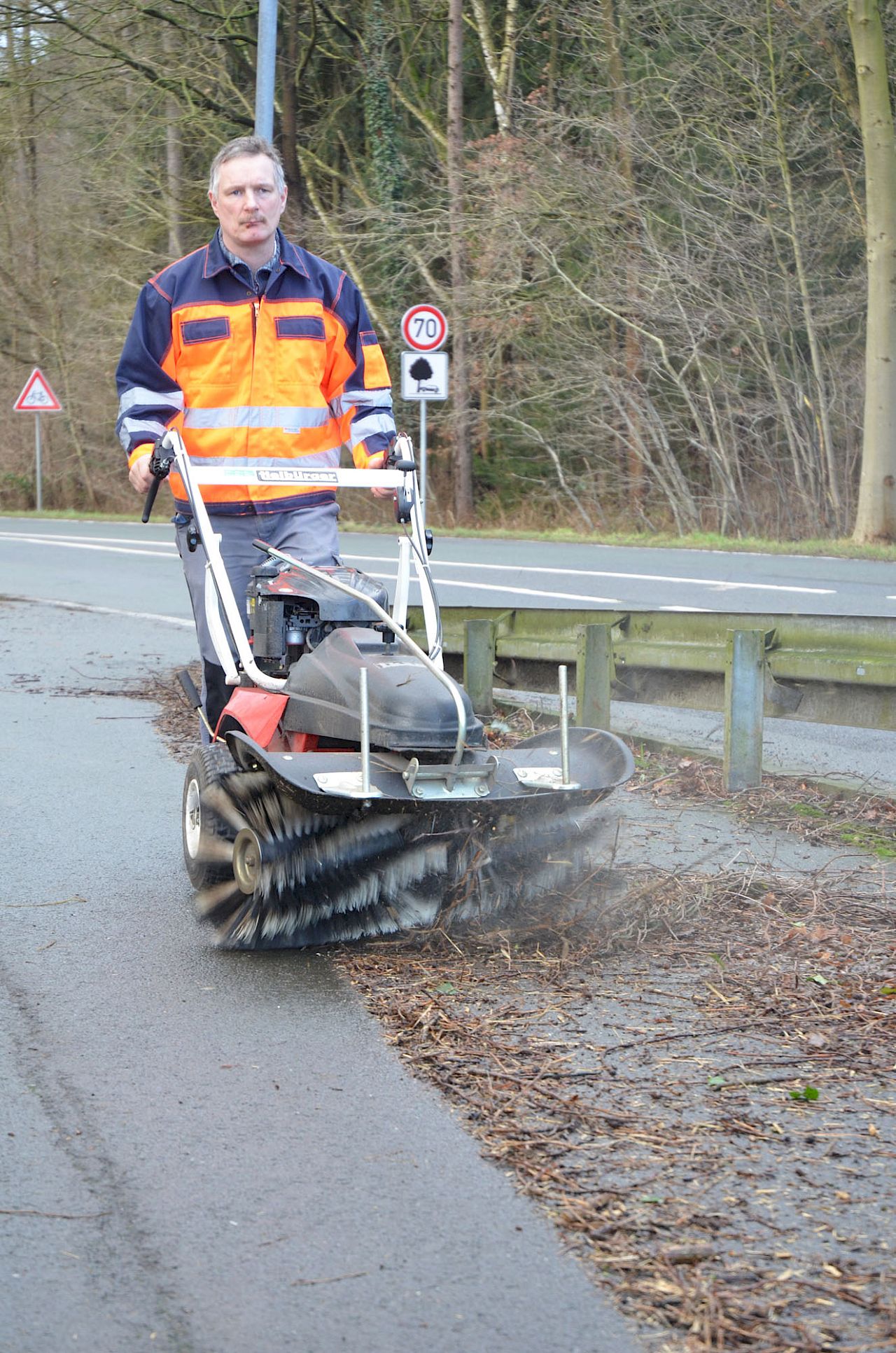 In Sachen Kehrtechnik fiel die Entscheidung nach ausführlichem Test letztlich zugunsten der tk38 professional von Tielbürger, die 2013 gekauft wurde. Kompakte Maße, Radantrieb, schwenkbare Bürste und das einfache Verladen des Geräts auf einen Pkw-Anhänger gehörten zu den Vorgaben der Mitarbeiter und gaben bei der Entscheidung den Ausschlag. Aus der Perspektive des Chefs kam dann noch der Budgetrahmen hinzu. „Größere Modelle mit noch vielfältigerer Ausstattung, wie etwa hydraulischem Antrieb, wären natürlich denkbar gewesen. Aber die tk38 als kompaktes Profimodell mit Universalbürste erfüllte unsere Anforderungen gut und lag preislich im richtigen Rahmen“, hebt er hervor. Nur zum Schneeeinsatz kam es angesichts des milden Winters 2013/2014 nicht. „Aber schließlich haben wir das Gerät ja nicht nur zum Fegen von Schnee gekauft“, fügt er schmunzelnd hinzu.