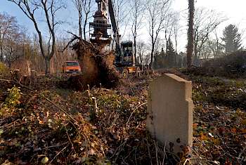Langwieriger als ein Beinbruch gestaltet sich die Umgestaltung des Friedhofs. Das Thema beschäftigt uns seit Jahren und wird uns so schnell nicht loslassen. Die Bestattungskultur erfordert ein Umdenken. Nach wie vor sehnen sich die Angehörigen nach einem Ort der Erinnerung, mehr und mehr wollen aus verschiedenen Gründen aber keine Pflegeverpflichtung für eine Grabstelle eingehen. Um ihren Wünschen nach pflegefreien Anlagen Rechnung zu tragen, sind in den vergangenen Jahren schon einige neue Grabarten entstanden. Auch unser neues Themengrabfeld soll solch individuellen Ansprüchen in puncto Pflege und Gestaltung gerecht werden. Auf einer seit Jahrzehnten nicht mehr genutzten Fläche von 2500 Quadratmetern, die kürzlich gerodet und vermessen wurde, wird es angelegt. Ein Landschaftsarchitekt hilft uns bei der Umsetzung unserer Vorstellungen.