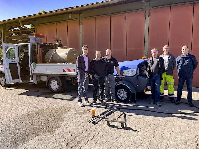 Mit Blick auf die erforderliche Technik hat die Gemeinde Schutterwald zunächst auf die Unterstützung durch die Technischen Betriebe Offenburg zurückgegriffen. Das dort vorhandene Heißwassergerät konnte mitgenutzt werden. Aufgrund einer Anregung aus dem Gemeinderat hat die Gemeinde inzwischen ein Vorführgerät beschafft. Damit ist der Bauhof Schutterwald heute in der Lage, die Bekämpfungsmaßnahmen auch eigenständig und kurzfristig umzusetzen.