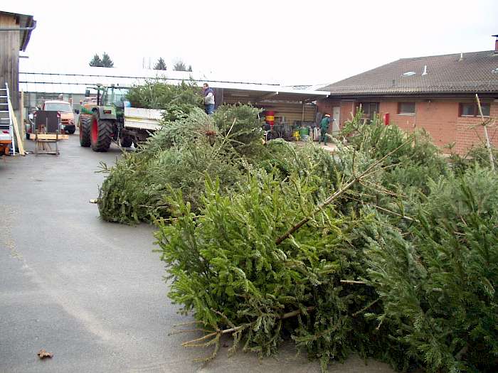 So berichtet etwa Ralf Klein vom Betriebshof in Zirndorf: „Die größeren, städtischen Bäume sammeln wir nach dem Fest selbst ein." Das seien aber bei weitem nicht so viele allerdings größere Nadelbäume. Diese werden mit Lkw und Ladekran abgeholt. Etwa 80 m³ Hackschnitzel fallen von den Weihnachtsbäumen an. Die Bäume werden am Betriebshof gesammelt und noch am selben Tag in den Heizungsbunker gehäckselt.