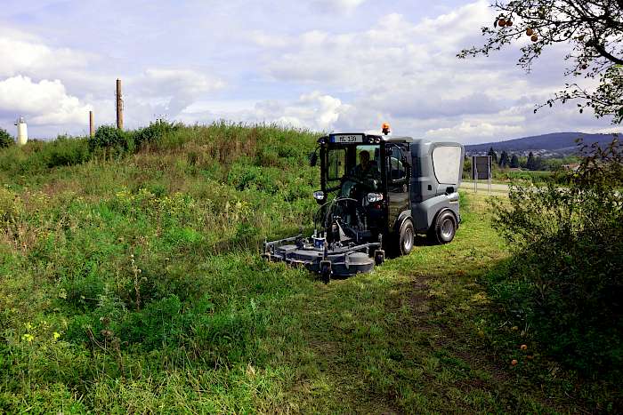 Drei Anbauräume an Front, Heck und über dem Motor ermöglichen das Zusammenfassen mehrerer Arbeitsschritte, etwa Mähen und gleichzeitige Aufnahme des Grüngutes. Das Schnellwechselsystem am Anbauraum auf dem Hinterwagen reduziert die Rüstzeit, indem es sich die fahrzeugeigene Hydraulikanlage zu Nutze macht.