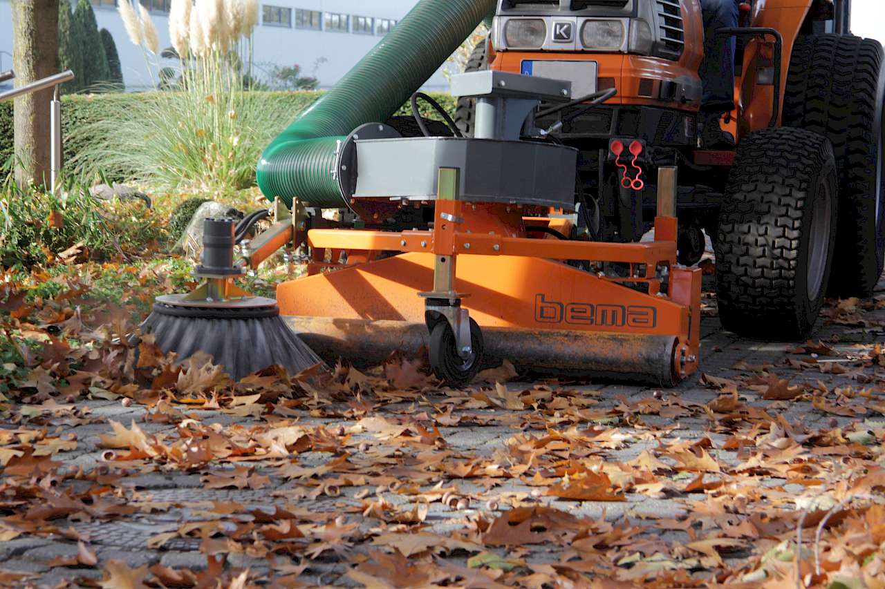 Die Saug-Kehrdüse ist eine Kombination aus bewährten Kehrmaschinenkomponenten und neuer Saug-Technik. Sie eignet sich zur Aufnahme von losem und leichtem Material auf verschiedenen Untergründen, wie Grünanlagen, versiegelten Flächen sowie befestigten Verkehrsflächen. Die Saugturbine kann wahlweise hydraulisch oder mechanisch über die Gelenkwelle des Trägerfahrzeugs angetrieben werden.