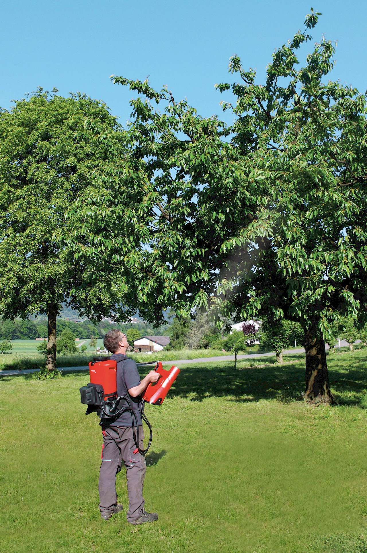 Das Gerät ermöglicht die Applikation von Pflanzenschutz- und Pflanzenstärkungsmitteln sowohl in dichte Laubbestände, als auch gezielt in große Höhen oder Weiten. Dabei wird eine gleichmäßige Bedeckung des Blattes sichergestellt. Gesprüht wird im Luftstrom mit druckgeregelter Flüssigkeitszufuhr. Es eignet sich beispielsweise zur Bekämpfung des Eichenprozessionsspinners vom Boden aus.