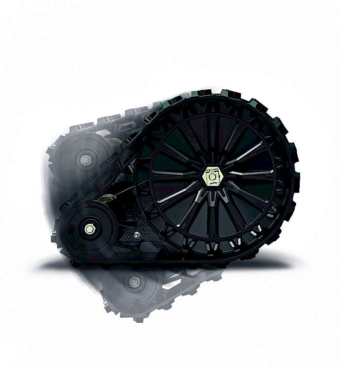 Die X Tweel-Räder bieten die Vorteile eines luftgefüllten Reifens, ihre Dämpfungswirkung erreichen sie jedoch durch flexible Kunststoffspeichen, die Lauffläche und innenliegende Nabe verbinden. So ist die Betriebssicherheit auch auf vermüllten Grundstücken (z.B. mit Flaschen) gewährleistet. In Kombination mit dem ComfortGlide-Sitz sorgen sie für einen hohen Fahrkomfort.