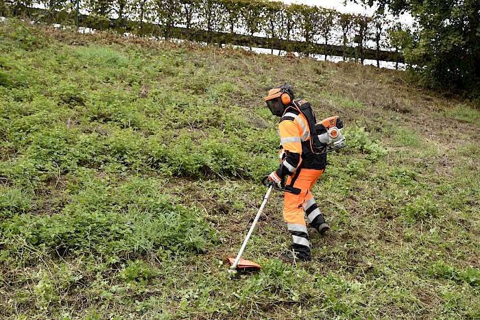 Für die Schmierung des Getriebekopfes (Winkelgetriebe) ist ein hochwertiges Fett vorgeschrieben. Regelmäßig nach ca. 15 bis 20 Betriebsstunden prüfen und ggf. ergänzen. Zum Teil sind die Getriebeköpfe mit Schmierung auf Lebenszeit ausgestattet. Die Leistung der Geräte hängt wesentlich vom Zustand der Schneidwerkzeuge ab, deshalb auch regelmäßig bei den Schneidköpfen die Fadenlänge prüfen sowie Messer und Sägeblätter nach Anweisung rechtzeitig und richtig mit zweckmäßigem Werkzeug nachschärfen. Täglich alle Verschraubungen auf festen Sitz überprüfen, die Vibration der Geräte führt oft zu Lockerungen. Schlagmesser und Sägemesser auf Risse prüfen, eine Klangprobe ist dabei hilfreich. Beschädigte Werkzeuge auswechseln. Beschädigte und unsachgemäß geschärfte Werkzeuge können eine erhebliche Unwucht erzeugen.