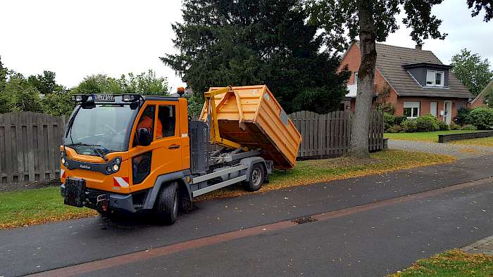 Ernst Schmitz: Wir sind von Bewohnern angesprochen worden, ob es eine Möglichkeit gäbe, Laubsammelkörbe aufzustellen. Im ersten Zuge haben wir dann begonnen, Drahtkörbe aufzustellen, mussten aber schnell feststellen, dass diese zu klein sind und viel zu häufig von unseren Bauhofmitarbeitern geleert werden mussten. Zweiter Schritt war die Einrichtung von Sammelplätzen, die regelmäßig von unseren Mitarbeitern angefahren werden mussten. Das hat uns allerdings auch nicht gefallen. Letztendlich kam der Bauhof auf die Idee, 5-m3-Hakenlift-Container dafür aufzustellen, die wir eh im Bauhof nutzen.