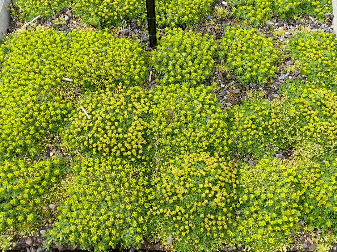 Zentral zeitweise entstehende, kleine Stellen mit Verbräunungen werden ähnlich wie bei manchen Thymusarten im Frühjahr rasch überwachsen. Blütenrückstände können sehr leicht mit einer nicht zu harten Bürste entfernt werden. Im Hinblick auf weitere Pflegemaßnahmen ist kein Aufwand notwendig. Die mattenartigen Polster sind sehr dicht und fest mit einer Höhe von 5 bis 8 cm. Bei der Pflanzung ist eine Pflanzdichte von 20 Stk./m² vorteilhaft, um einen raschen Flächenschluss zu erzielen.
