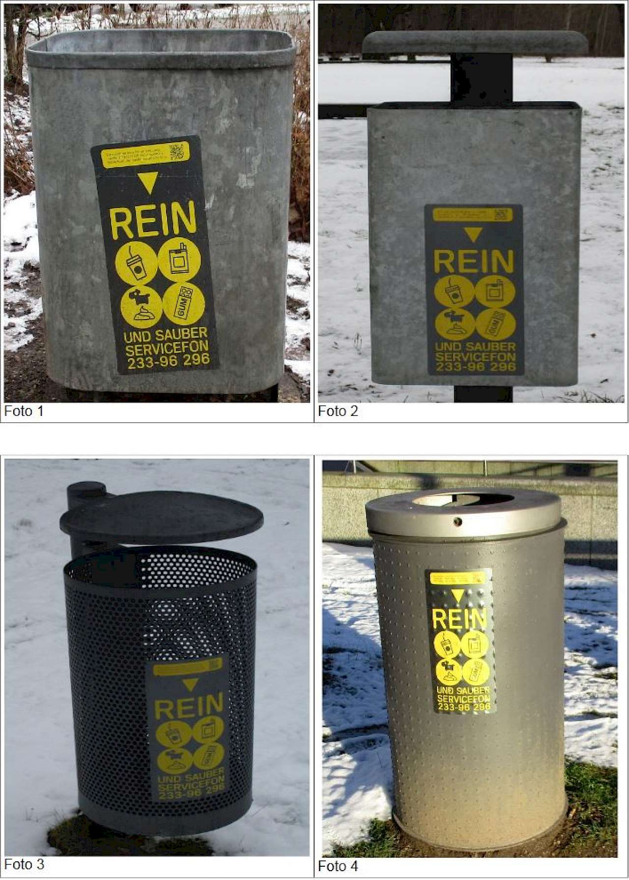 Anlässlich des Stadtratsantrages vom Sommer 2015 wurden laut Baureferat mögliche Alternativen überlegt und letztlich 2016 und 2017 auf Grünflächen Versuche mit Abfallbehältertypen mit verschmälerter Einwurföffnung gestartet, von denen ein Typ seit vielen Jahren in der Fußgängerzone und auf öffentlichen Plätzen eingesetzt werde (Foto 4).