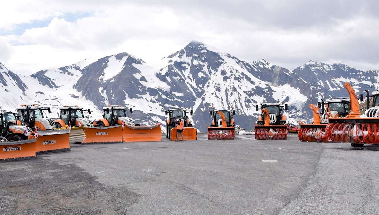 Einen Neuzugang verzeichnet auch die Reihe Terrus: Der Steyr Terrus CVT verfügt über eine Frontzapfwelle mit zwei Geschwindigkeiten (1000/1000 ECO) und kann mit Reifen bis zu 2,05 m Durchmesser gefahren werden. Der 6-Zylinder-Motor bietet eine Leistung von 250 PS, weshalb der Terrus CVT sich gut für Transportarbeiten eignet. Doch auch der Einsatz für Räumarbeiten im Winterdienst ist möglich, wie Steyr auf dem Großglockner zeigte. Als besonderen Komfort für den Fahrer stellt der Hersteller die leise gefederte Kabine mit 69 dbA heraus.
