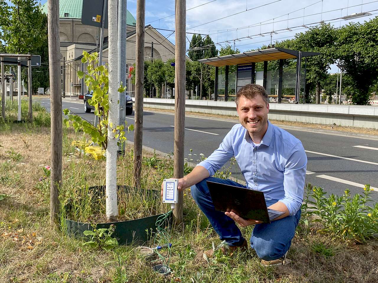 Seit 2020 beschäftigt sich das Team um Manuel Kornmayer mit dem Thema Bodensensorik. „Damals hatte uns ein externer Dienstleister diese Methodik vorgeschlagen, um die Bewässerung der Stadtbäume angesichts der zunehmenden Trockenheit gezielter und effizienter zu gestalten. Zudem zeigten in dem Jahr plötzlich bis zu 800 unserer Stadtbäume Vitalitätsverluste – nach drei Jahren Trockenheit. Uns wurde immer klarer: Wir müssen zeitnah reagieren“, erinnert er sich.