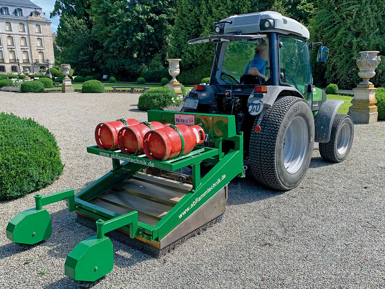 Abflammgeräte stehen in verschiedenen Größen vom einfachen Propangasbrenner bis hin zu Großflächenlösungen zur Verfügung. Hier wird das Wildkraut mit der offenen Flamme abgeflämmt. In den meisten Fällen wird dieses Verfahren mit einzelnen Brennern durchgeführt. Diese Methode eignet es sich besonders für schwer zugängliche Bereiche, die mit für größere Flächen geeignete Technik schlecht oder gar nicht zu erreichen ist. Die Wildkrautbeseitigung mit offener Flamme erfordert jedoch eine aufmerksame und umsichtige Arbeitsweise, da die Gefahr besteht, kleinere Flächenbrände auszulösen. Eine weitere Variante dieser Technik sind Abflammgeräte, bei denen mehrere Brenner in einem System zusammengefasst sind. Die eignen sich für die Unkrautbekämpfung auf größeren Flächen. Möglich sind hier sowohl handgeführte Geräte als auch Anbaulösungen für Kommunaltraktoren.